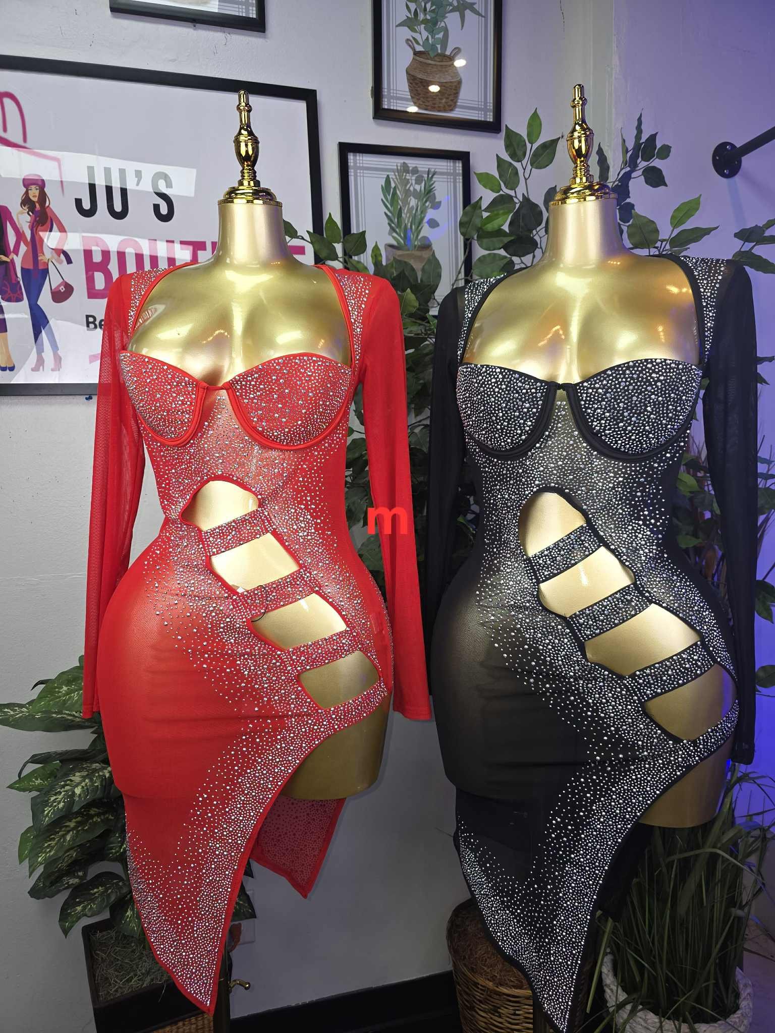 The Club Siren Β is engineered for the ultimate night out. This provocative dress combines sparkling embellishments with daring cutouts to ensure all eyes are on you.