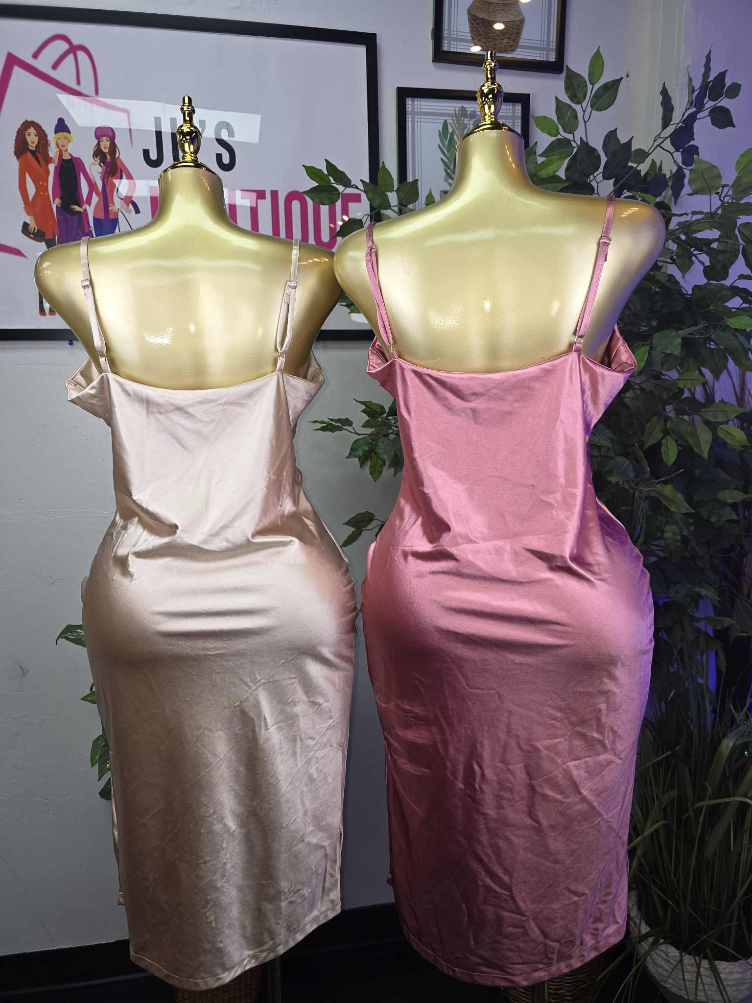 - Likely Name: They are commonly known as a Cowl Neck Slip Dress or a Satin Slip Dress.