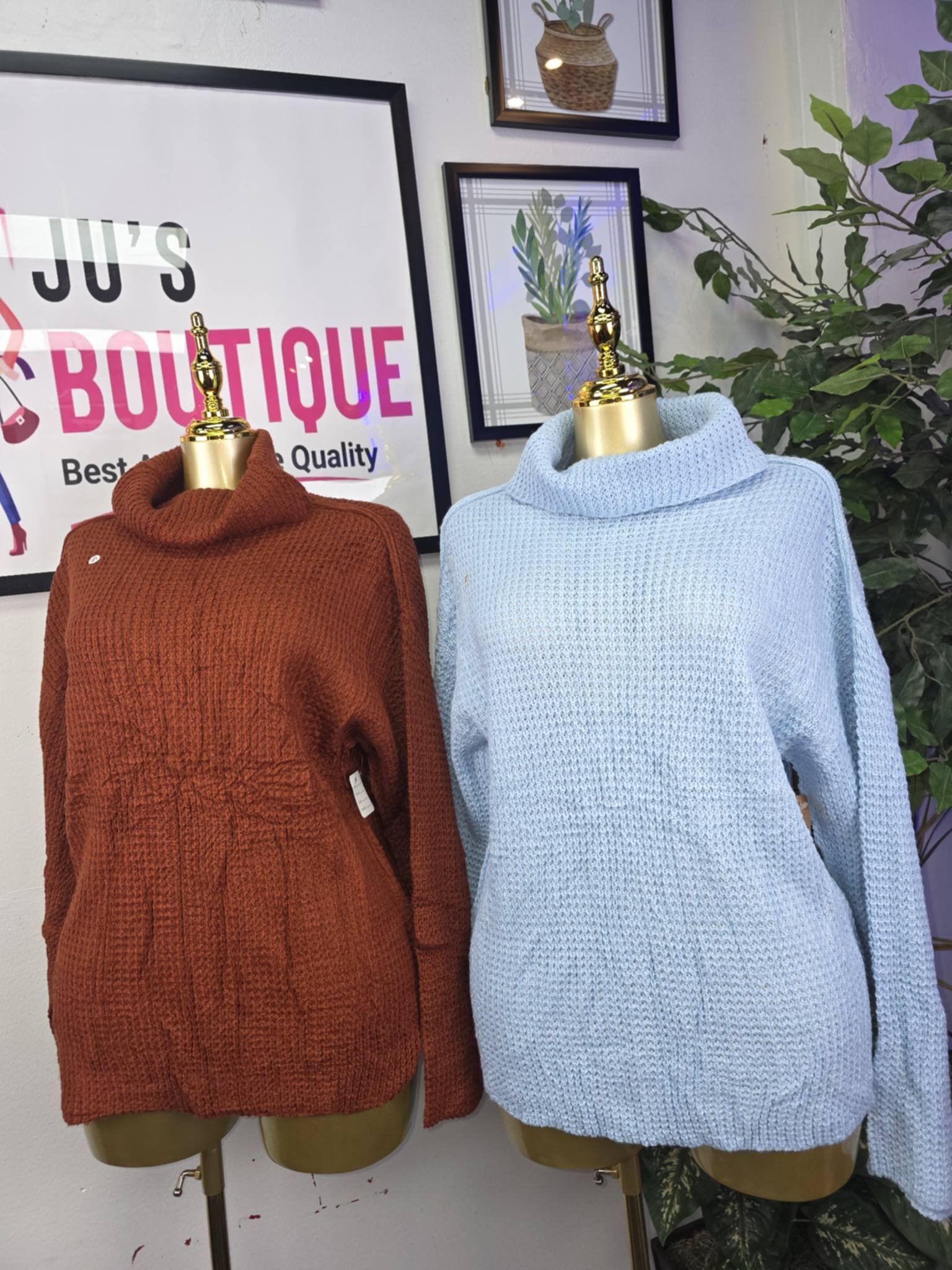 Snuggle up in the Fireside Cowl-Neck Knit Sweater, your new go-to piece for cozy, textured style. This sweater boasts a substantial, yet soft, knit featuring a chunky waffle pattern that locks in warmth. The generously sized cowl-neck drapes beautifully and can be adjusted for maximum comfort and style. Its relaxed, boxy fit makes it perfect for layering over lighter tops.